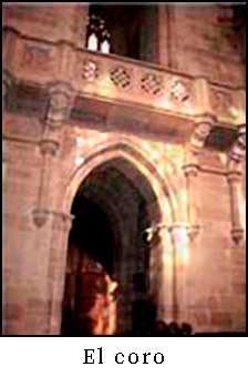 El mismo Doménech, también diseño el coro, que realizo en una única pieza, en voladizo protegido por una balaustrada de piedra, decorada con figuras geométricas.